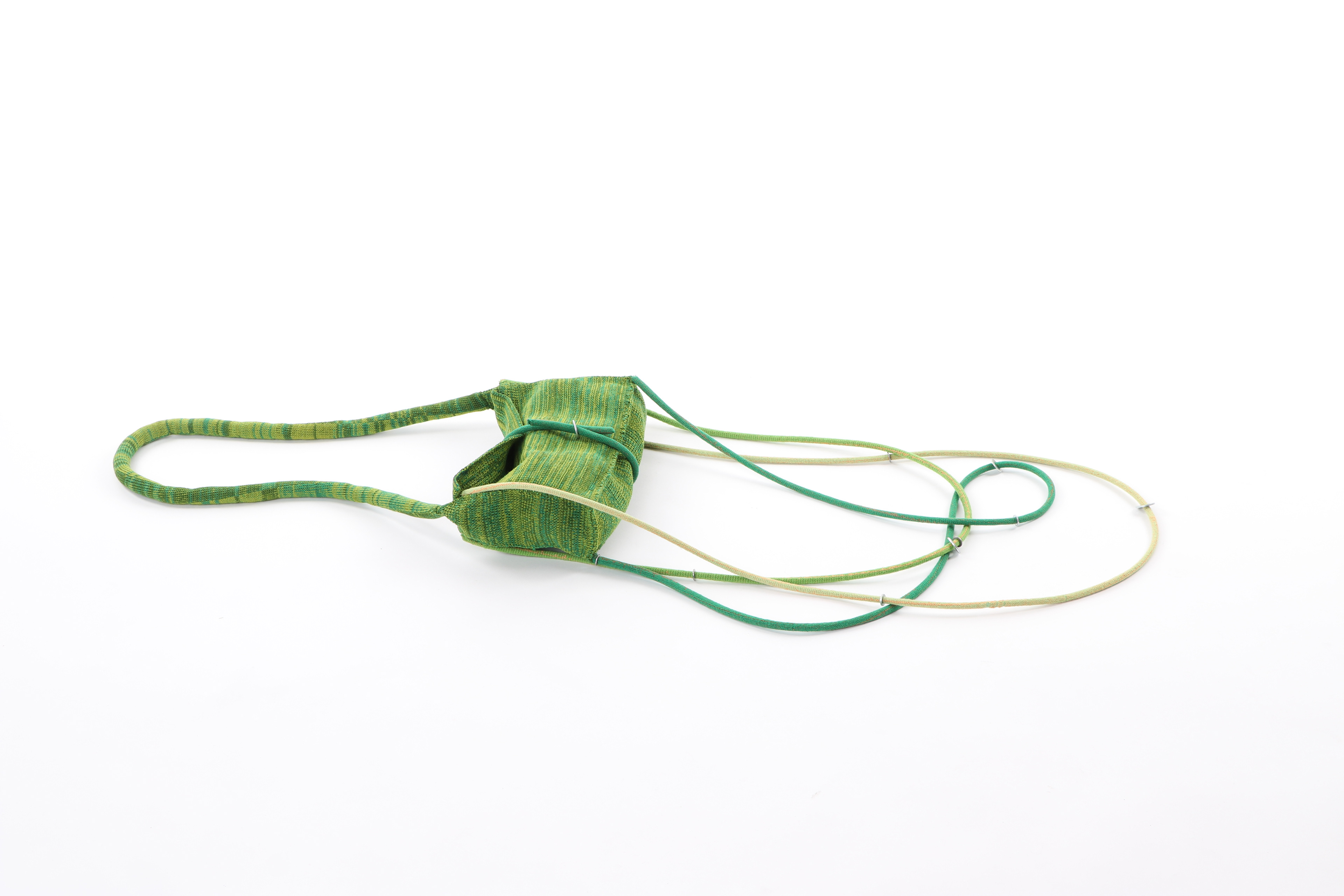 Knitted tech-garment in the shades of a lush green forest. Meant to be worn with the intention to communicate, exchange data and therefore build trust with the surrounding environment.